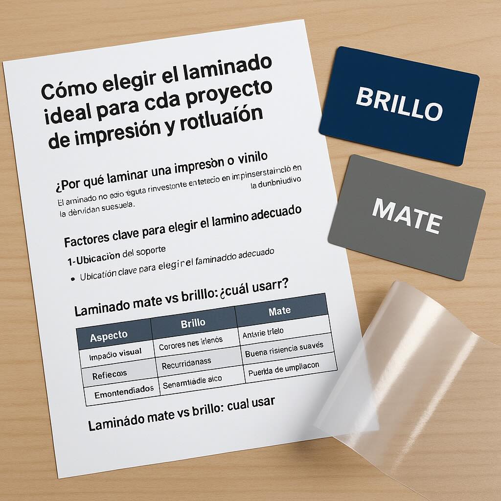 En general, como has podido ver, seleccionar el laminado correcto no es una cuestión estética solamente. Afecta la durabilidad, la funcionalidad y la percepción profesional de tu trabajo. Analizar el entorno, la duración del proyecto y el acabado visual deseado te permitirá tomar decisiones acertadas y evitar problemas a futuro.