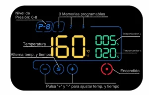 - Uso intuitivo con pantalla táctil: configura fácilmente la temperatura, tiempo y presión desde su panel digital GY-13 con solo unos toques. Ideal para operarios sin experiencia previa.