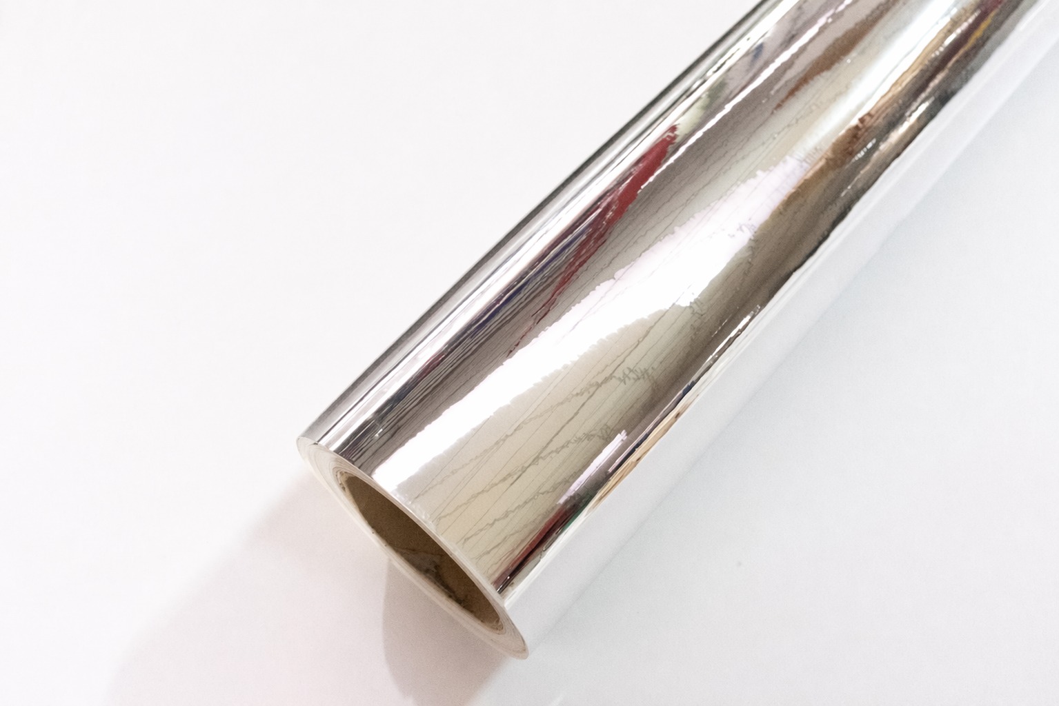 - Film PET cromado de 50 micras, con adhesivo transparente permanente.